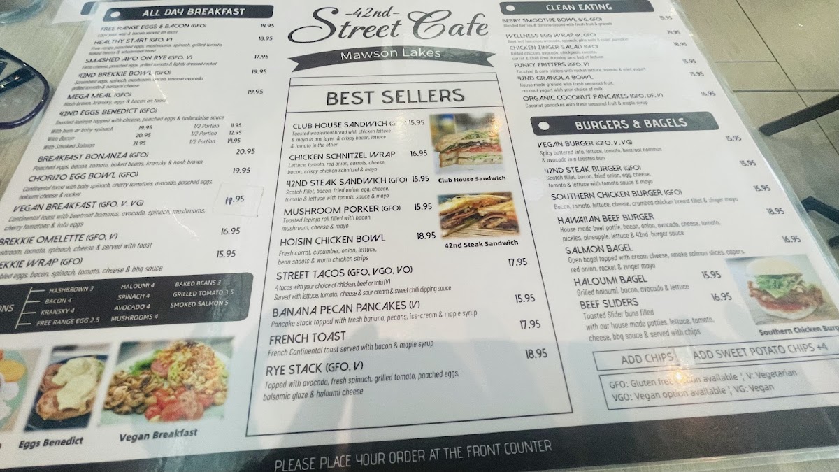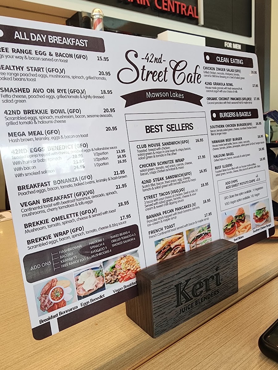 Welcome to 42nd Street Cafe, the delightful culinary gem located in Mawson Lakes, Australia. This vibrant cafe offers a diverse menu catering to breakfast lovers, brunch enthusiasts, and those with a sweet tooth.